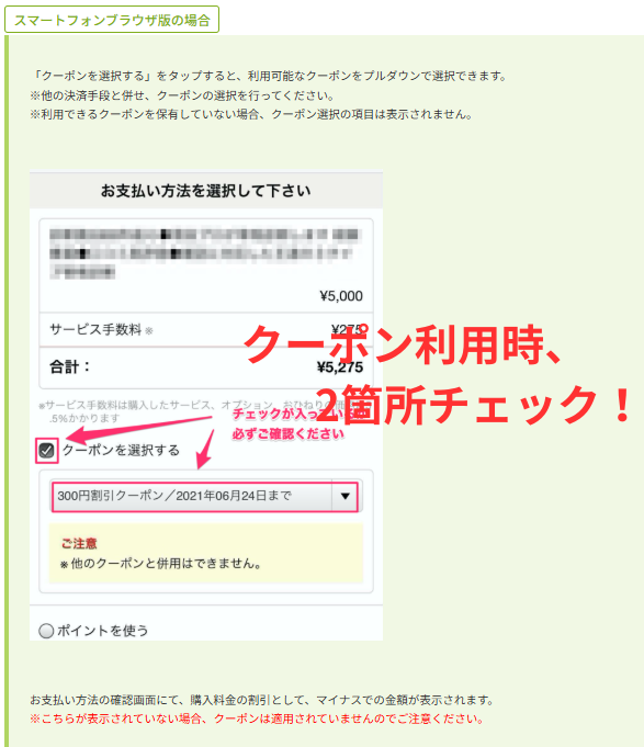 3⃣ステップ 購入画面で「クーポンを利用する」を選択