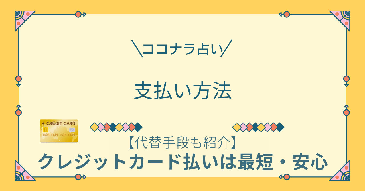 ココナラ占いの支払い方法の中でも、クレジットカード払いは最も早くて安心です。